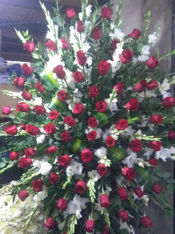 La cruz fúnebre tiene 2 m de alto ,se elabora con rosas rojas importadas,lilium , complementado con otros detalles de flores y finos follajes